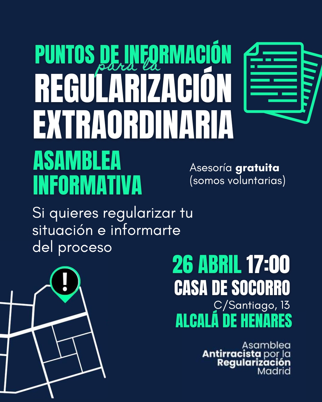 馃棧Si eres una persona migrante y te quieres acoger a la regularizaci贸n extraordinaria anunciada por el gobierno, te animamos a venir a esta sesi贸n informativa en la que presentaremos el nodo de apoyo que ha surgido en Alcal谩.